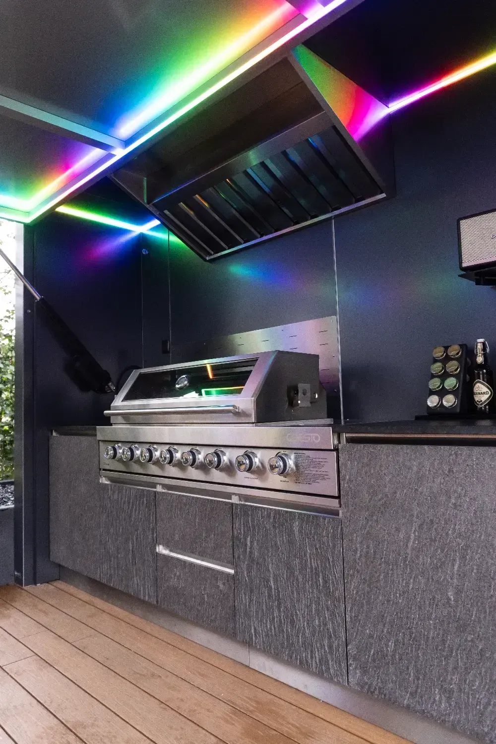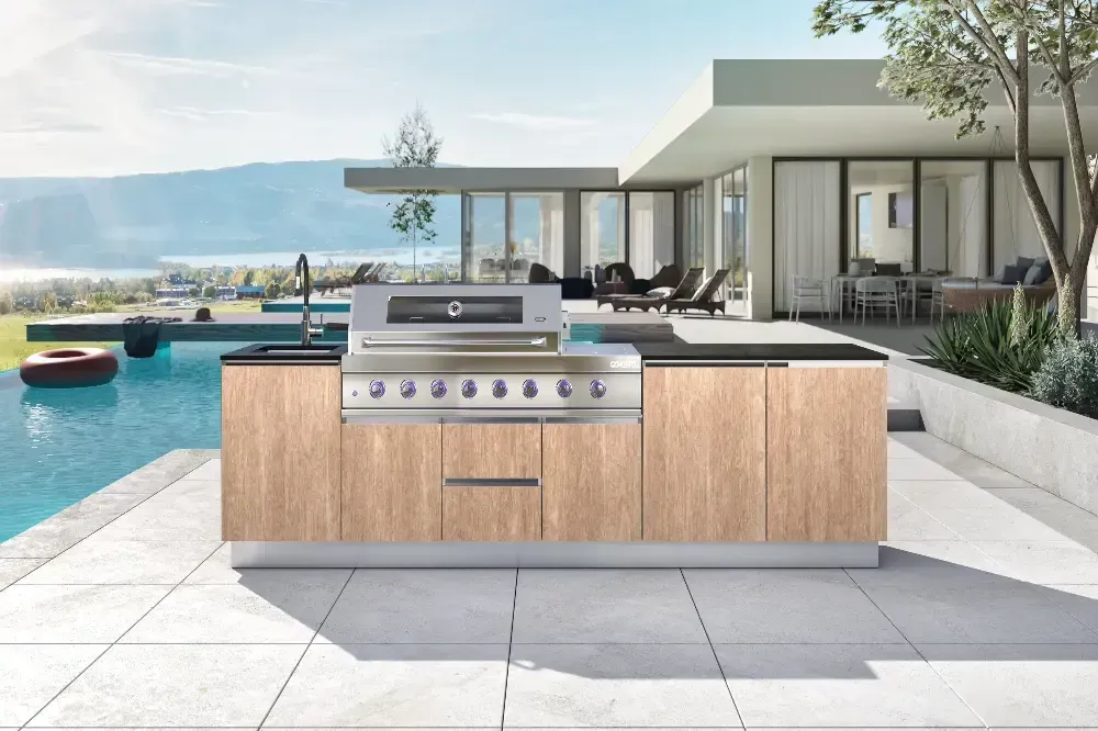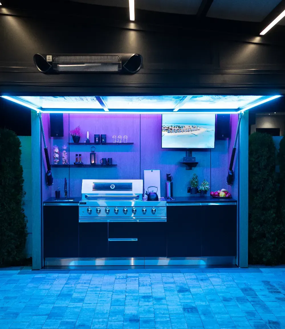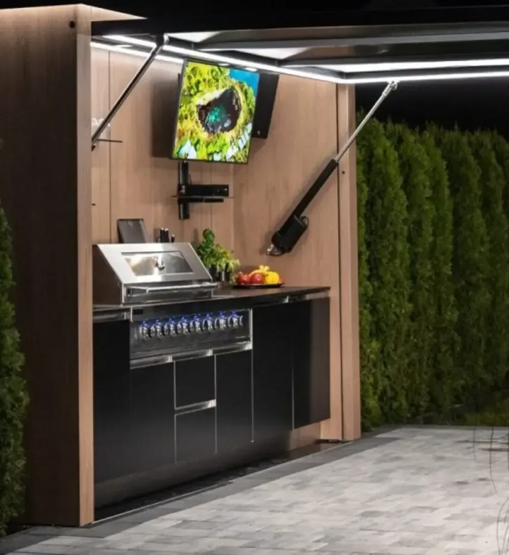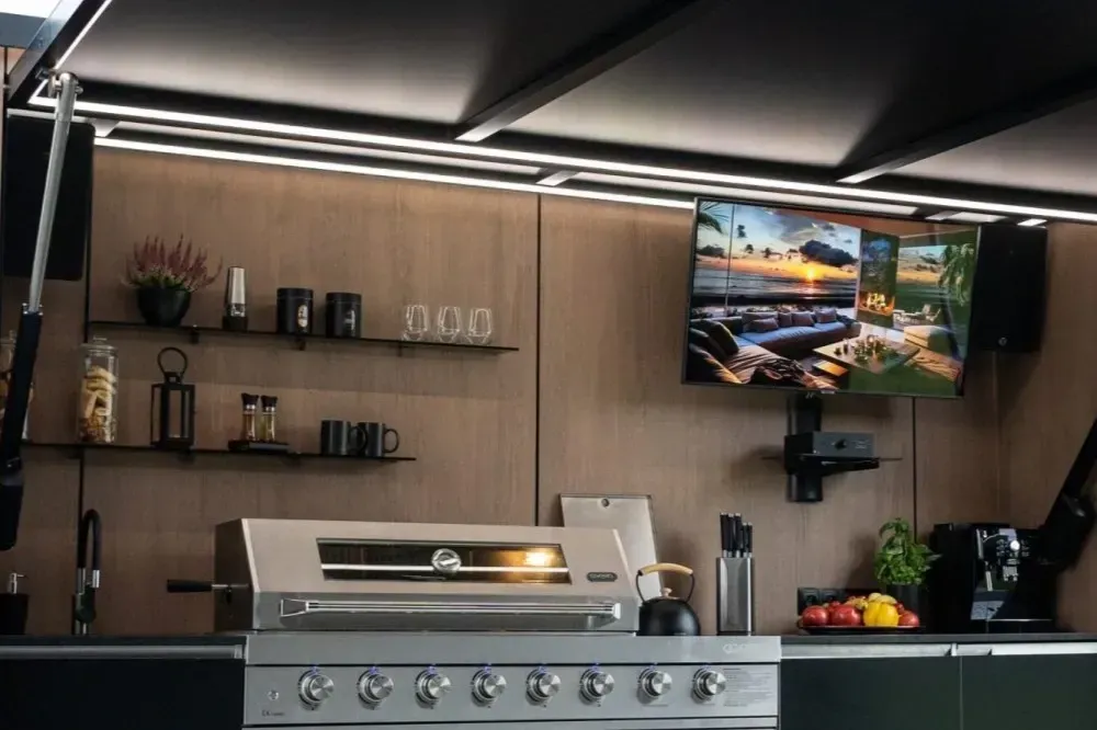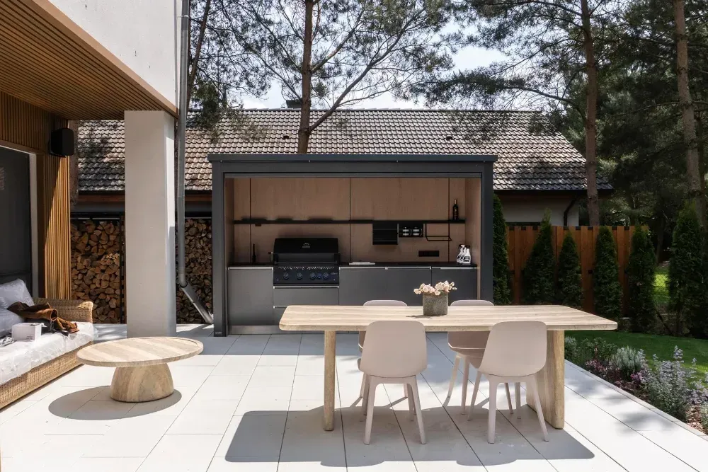 e sentir-se preso. Comece a cozinhar em harmonia com a natureza hoje mesmo. Uma combinação de cozinha, grelhador, cinema em casa, espaço de convívio e lazer ao ar livre.